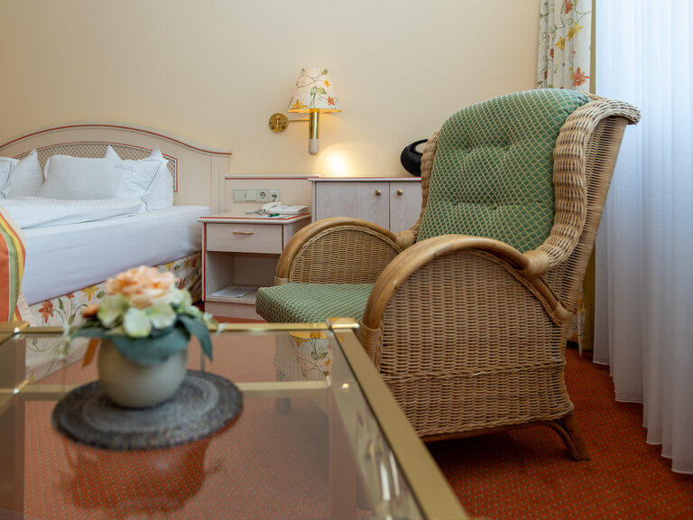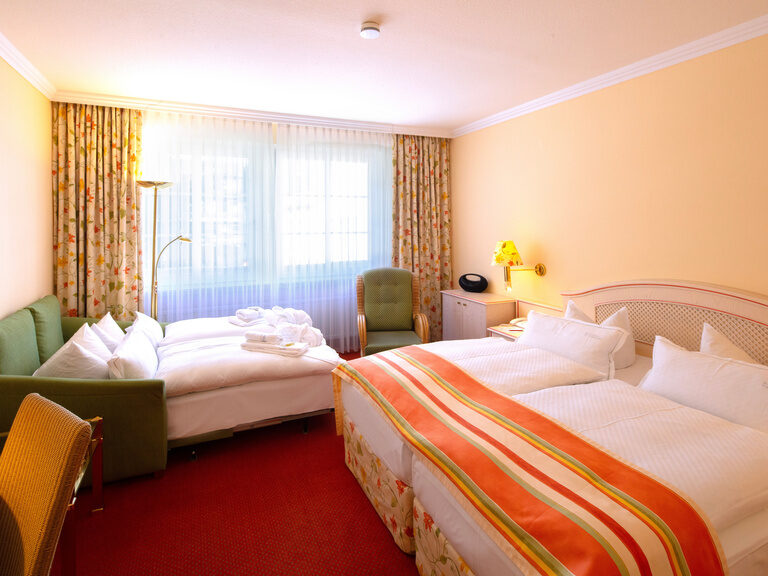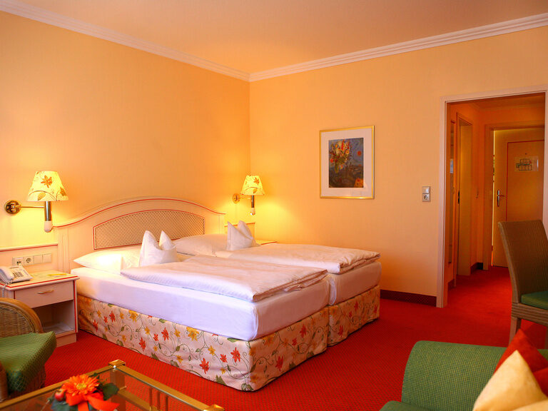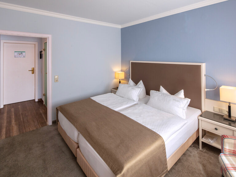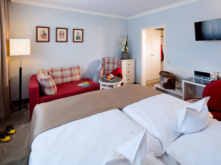 Gönnen Sie sich ein Upgrade in unsere Deluxe Doppelzimmer und genießen Sie erholsame Nächte. Neben einer Sitzgelegenheit mit Schreibtisch bietet das Deluxe Zimmer Platz für ein gemütliches Sofa.Ausstattung